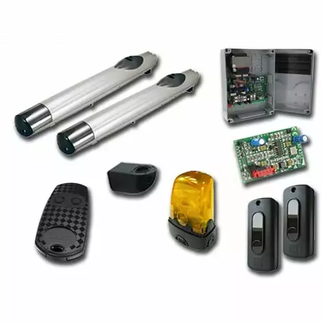 CAME – KIT AUTOMATISME AMICO 001U6117FR, TESTÉ CONFORMÉMENT AUX NORMES EN 12453-EN 12445SYSTÈME COMPLET POUR PORTAILS BATTANTS JUSQU’À 1,8 MÈTRES PAR VANTAIL AVEC MOTEUR 24V DC KIT AMICO001U6117FR U6117FR24V DCIL INCLUT :- 2 A1824 Motoréducteur irréversible avec encodeur pour vantaux jusqu’à 1,8 m – 24V DC- 1 801QA-0050: Armoire de commande multifonctions, alimentation 230V AC, pour portails à deux vantaux 24V (ex 002ZL92)- 1 AF43S Carte radiofréquence enfichable à 433,92 MHz- 1 TOP-432EE Émetteur multiutilisateur à deux canaux avec auto-apprentissage 433,92 MHz- 1 DIR10 Paire de photocellules infrarouges pour montage extérieur avec une portée de 10 Mt- 1 KLED24 clignotant à LED 24V DC- 1 KIAROS support de clignotant – 1 Plaque de portail.
