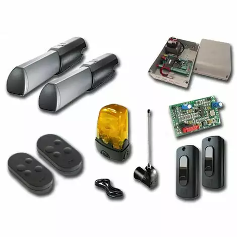 CAME – KIT AUTOMATISME ATI 001U7084FR, TESTÉ CONFORMÉMENT AUX NORMES EN 12453-EN 12445SYSTÈME COMPLET POUR PORTAILS À DEUX BATTANTS JUSQU’À 3 MÈTRES PAR BATTANT AVEC MOTEUR 230V AC KIT ATI001U7084FR    U7084FR230V AC IL COMPREND:-  2  A3000  Motoréducteurs irréversibles de 230V AC pour vantail jusqu’à  3 Mt, temps d’ouverture 90° – 19 sec-  1  ZA3P  Armoire de commande avec gestion des butées des fins de course et réglage de la vitesse de ralentissement-  1  AF43S  Carte radiofréquence enfichable 433,92 MHz-  2  806TS-0102 TOPD4FKS  Émetteurs double fréquence, 4 canaux avec fonction d’autoapprentissage, noir (16 777 216 combinaisons en mode tam, 4096 combinaisons en mode top)- 1 TOP-A433N Antenne accordée 433,92 MHz- 1 TOP-RG58 Câble coaxial 5 Mt- 1 DIR10 Jeu de photocellules en application apparente, à rayon infrarouge synchronisé, pour montage externe, avec une portée de 10 Mt- 1 KLED Clignotant à led 230V AC- 1  Plaque portail.