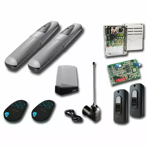 CAME – KIT AUTOMATISME AXO 001U7336, TESTÉ CONFORMÉMENT À LA NORME EN 12453-EN 12445.SYSTÈME COMPLET POUR PORTAILS BATTANTS JUSQU’À 3 MÈTRES PAR VANTAIL AVEC MOTEUR 230V AC.TEMPS D’OUVERTURE 90° – 20 SECONDES. KIT AXO001U7336    U7336230V ACIL INCLUT :-  2  AX302304 Motoréducteur irréversible avec encodeur pour vantaux jusqu’à 3 m, 230V AC, temps d’ouverture 90° – 20 secondes-  1  ZM3E Armoire de commande multifonctions pour portails battants à deux vantaux avec affichage de la signalisation, autodiagnostic des dispositifs de sécurité et décodage radio intégré-  1  AF43S Carte radio enfichable à 433,92 MHz-  2  806TS-0270 Émetteur rolling code quatre canaux à 433,92 MHz 806ts-0270-  1  TOP-A433N  Antenne accordée 433,92 MHZ-  1  TOP-RG58 Câble de connexion de l’antenne 5 Mt-  1  DIR10 Paire de photocellules infrarouges montées en surface avec portée 10 Mt-  1  806LA-0020 clignotant à LED 24v/230v, blanc krx1fxsw 806la-0020-  1  Plaque de portail.