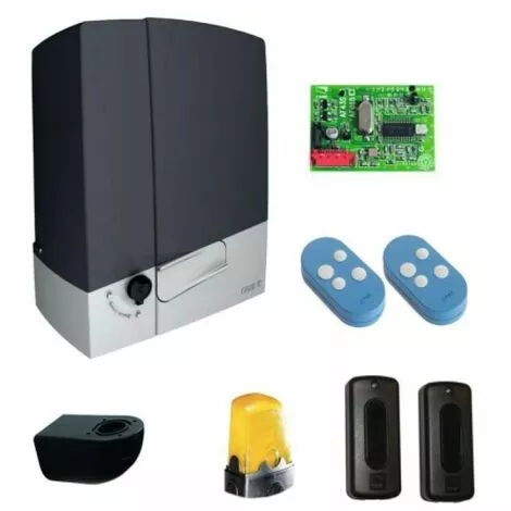 Description Automatisme pour portail coulissant à usage résidentiel et collectif (usage intensif).Pour portails jusqu’à 14 m ou 400 kg.Avec carte électronique intégrée, dispositif de contrôle de mouvement et de détecter d’obstacle et fins de course mécaniques.Connectable au Came Cloud.Composition :1 motoréducteur 24 V finition gris anthracite RAL 7024, avec armoire intégrée,1 clignotant avec son support,1 jeu de photocellules (portée 10 m),1 carte radio,2 émetteurs.