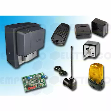 CAME – KIT DE MOTORISATION 230V AC AVEC ENCODEUR POUR PORTAILS COULISSANTS JUSQU’À 400 KG 14 MT, AVEC ARMOIRE DE COMMANDE ET FIN DE COURSE MÉCANIQUE801MS-0020 BX704AGS (EX BX-74)001U2907 U2907 (EX U2716)230V ACIL COMPREND:- 1 801MS-0020 BX704AGS (BX-74) Moteur 230V AC avec encodeur et carte de commande- 1 AF43S Rècepteur radio en 433,92 MHz- 1 TOP-432EE Télécommande 2 canaux en 433,92 MHz- 1 TOP-A433N Antenne en 433,92 MHz- 1 TOP-RG58 Câble coaxial 5 Mt- 1 SET-E Sèlecteur à clé- 1 DELTA-E Jeu de photocellules de sécurité 20 Mt- 1 KLED Clignotant à led 230V AC- 1 Plaque portail