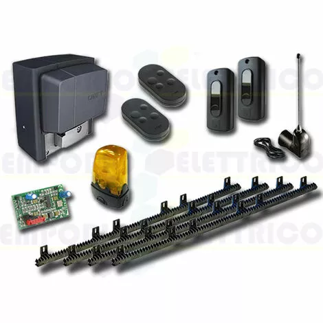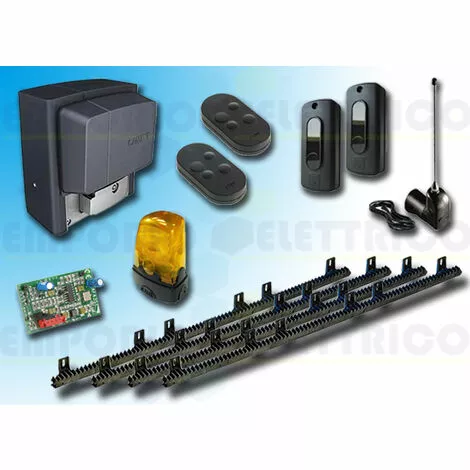 CAME – KIT DE MOTORISATION 801MS-0020 BX704AGS (EX BX-74) 230V AC AVEC ENCODEUR POUR PORTAILS COULISSANTS JUSQU’À 400 KG 14 MT, AVEC ARMOIRE DE COMMANDE ET FIN DE COURSE MÉCANIQUE4 MÈTRES DE CRÉMAILLÈRE EN NYLON 30X20 SONT INCLUS KIT BX + 4 MT DE CRÉMAILLÈRE EN NYLON 30X20EMPU2923CREM230V ACIL COMPREND:- 1 801MS-0020 BX704AGS Automatismes avec carte électronique à afficheur de programmation, décodage radio incorporé, dispositif de contrôle du mouvement, détection d’obstacle et fins de course mécainques pour portails coulissants jusqu’à 400 kg et max 14 mt de longueur- 2 806TS-0102 TOPD4FKS Émetteur double fréquence, 4 canaux avec fonction d’autoapprentissage, noir (16 777 216 combinaisons en mode tam, 4096 combinaisons en mode top)- 1 AF43S Carte radiofréquence enfichable 433,92 MHz- 1 TOP-A433N Antenne accordée 433,92 MHz- 1 TOP-RG58 Câble coaxial 5 Mt- 1 DIR10 Jeu de photocellules en application apparente, à rayon infrarouge synchronisé, pour montage externe, avec une portée de 10 Mt- 1 KLED Clignotant à led 230V AC- 4 Mètres crémaillère en nylon module 4 30×20- 1 Plaque portail