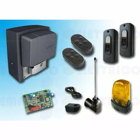 CAME – KIT DE MOTORISATION BX 001U2301, AVEC LE MOTORÉDUCTEUR 801MS-0030 (EX BX-78), TESTÉ SELON LES NORMES EN 12453-EN 12445SYSTÈME COMPLET POUR PORTAILS COULISSANTS JUSQU’À 800 KG 14 MT, AVEC ARMOIRE DE COMMANDE ET FIN DE COURSE MÉCANIQUE KIT BX001U2301 U2301230V ACIL COMPREND:- 1 801MS-0030 (EX BX-78) BX708AGS Automatisme avec carte électronique à afficheur de programmation, décodage radio incorporé, dispositif de contrôle du mouvement, détection d’obstacle et fins de course mécaniques pour portails coulissants jusqu’à 800 KG et max. 14 Mt de longueur.- 1 AF43S Carte radiofréquence embrochable. 433,92 MHz- 2 806TS-0102 TOPD4FKS Émetteurs double fréquence, quatre canaux, avec fonction d’autoapprentissage, couleur noire (16 777 216 combinaisons en mode TAM, 4 096 combinaisons en mode TOP)- 1 TOP-A433N antenne accordée 433,92 MHz- 1 TOP-RG58 Câble pour branchement antenne 5 Mt- 1 DIR10 Jeu de photocellules en application apparente 12 – 24 V AC – DC. Portée : 10 Mt- 1 KLED Clignotant de signalisation à LED 230V AC- 1 KIAROS Support pour fixation murale- 1 Plaque portail