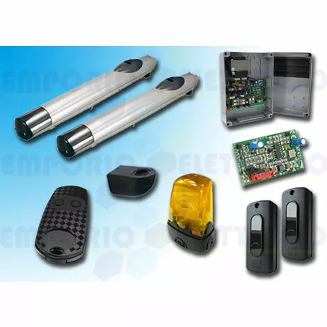 CAME – KIT DE MOTORISATION 24V DC AVEC ENCODEUR POUR PORTAILS BATTANTS JUSQU’À 1,8 MT PAR VANTAIL KIT AMICO001U6117 U611724V DC IL COMPREND:- 2 A1824 MOTEURS 24V DC AVEC ENCODEUR BLOQUANT- 1 801QA-0050: ARMOIRE DE COMMANDE MULTIFONCTIONS POUR PORTAILS BATTANTS À DEUX VANTAUX À 24V (EX 002ZL92)- 1 AF43S RÉCEPTEUR RADIO EN 433,92 MHz- 1 TOP-432EE TÉLÉCOMMANDE 2 CANAUX EN 433,92 MHz- 1 DIR10 JEU DE PHOTOCELLULES DE SÉCURITÉ 10 MT- 1 KLED24 CLIGNOTANT À LED 24V DC- 1 KIAROS SUPPORT CLIGNOTANT- 1 PLAQUE PORTAIL