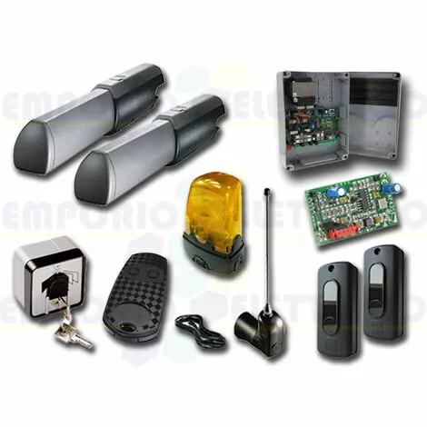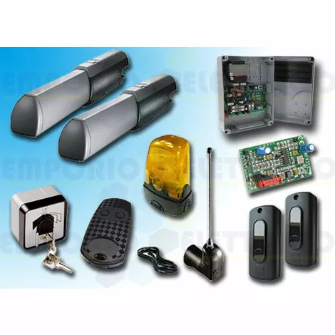 CAME – KIT DE MOTORISATION 24V DC POUR PORTAILS BATTANTS JUSQU’À 3 MT PAR VANTAIL 001U7111 U7111 (EX U7110)24V DCIL COMPREND:- 2 A3024N MOTEURS 24V DC BLOQUANTS AVEC MICRO-INTERRUPTEURS D’ARRÊT- 1 ZL180 ARMOIRE DE COMMANDE- 1 AF43S RÉCEPTEUR RADIO EN 433,92 MHZ- 1 TOP-432EE TÉLÉCOMMANDE 2 CANAUX EN 433,92 MHZ- 1 TOP-A433N ANTENNE EN 433,92 MHZ- 1 TOP-RG58 CÂBLE COAXIAL 5 MT- 1 SET-J SÉLECTEUR À CLÉ AVEC CACHE DE PROTECTION- 1 DIR10 JEU DE PHOTOCELLULES 10 MT- 1 KLED24 CLIGNOTANT À LED 24V DC- 1 PLAQUE PORTAIL