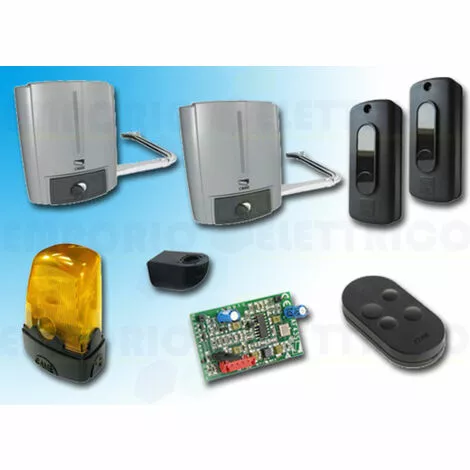CAME – KIT DE MOTORISATION FAST70 001U1872FR, TESTÉ SELON LES NORMES EN 12453-EN 12445SYSTÈME COMPLET POUR PORTAILS BATTANTS JUSQU’À 2,3 MT PAR VANTAIL (200 KG), AVEC MOTEUR DE 230V AC KIT FAST 70001U1872FR U1872FR230V AC COMPRENDE:- 1 FA70230CB Automatisme irréversible avec carte électrique et bras de transmission articulé pour portails battants jusqu’à 2,3 Mt par vantail, 230V AC- 1 FA70230 Motoréducteur irréversible avec bras de transmission articulé pour portails battants jusqu’à 2,3 Mt par vantail- 1 806TS-0102 TOPD4FKS Émetteur double fréquence, 4 canaux, avec fonction d’autoapprentissage, noir (16 777 216 combinaisons en mode tam, 4096 combinaisons en mode top)- 1 AF43S Carte radiofréquence embrochable 433,92 MHz- 1 DIR10 Jeu de photocellules 10 mt- 1 KLED Clignotant à led 230V AC- 1 KIAROS Support clignotant- 1 Plaque portail