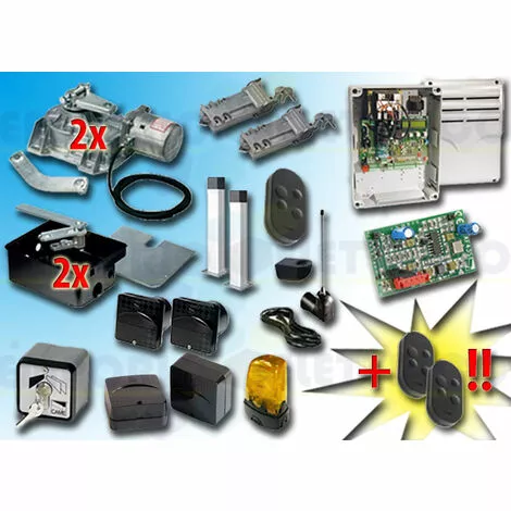 CAME – KIT DE MOTORISATION 230V AC POUR PORTAILS BATTANTS JUSQU’À 3,5 MT PAR VANTAIL, AUTOMATISME ENTERRÉ 001FROG-A type 3C 230V ACLE KIT COMPREND:- 2 FROG-A MOTEURS 230V AC BLOQUANTS- 2 FROG-CFN CAISSONS DE FONDATION EN ACIER- 2 A4366 DISPOSITIFS DE DÉBLOCAGE AVEC CLÉ PERSONNALISÉE- 1 ZA3P ARMOIRE DE COMMANDE- 1 AF43S RÉCEPTEUR RADIO EN 433,92 MHz- 3 806TS-0102 TÉLÉCOMANDE 4 CANAUX EN 433.92/868.35 MHz CODE FIXE, DOUBLE FRÉQUENCE, 4 BOUTONS, NOIR. TOPD4FKS- 1 TOP-A433N ANTENNE EN 433,92 MHZ- 1 TOP-RG58 CÂBLE COAXIAL 5 MT- 1 806TF-0070 PAIRE DE PHOTOCELLULES RÉGLABLES À RAYONS INFRAROUGES SYNCHRONISÉS À ENCASTRER. PORTÉE : 30 MÈTRES (EX CODE 001DELTA-SI / 001DELTA-I)- 2 DOC-L COLONNETTE EN ALUMINIUM H=0,5 MT- 1 SET-E SÉLECTEUR À CLÉ- 1 806TF-0080 PAIRE DE PHOTOCELLULES INFRAROUGES RÉGLABLES ET SYNCHRONISÉES POUR L’EXTÉRIEUR, PORTÉE DE 30 MÈTRES.(EX CODE 001DELTA-SE / 001DELTA-E)- 1 KLED CLIGNOTANT À LED 230V AC- 1 KIAROS SUPPORT CLIGNOTANT- 1 PLAQUE PORTAIL