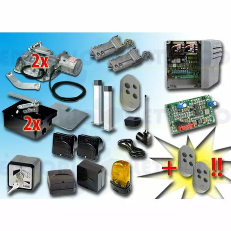 CAME – KIT DE MOTORISATION 24V DC POUR PORTAILS BATTANTS JUSQU’À 3,5 MT PAR VANTAIL, AUTOMATISME ENTERRÉ, AVEC ENCODEUR 001FROG-A24E type 3A 24V DCLE KIT COMPREND:- 2 FROG-A24E MOTEURS 24V DC BLOQUANTS AVEC ENCODEUR- 2 FROG-CFN CAISSONS DE FONDATION EN ACIER- 2 A4366 DISPOSITIFS DE DÉBLOCAGE AVEC CLÉ PERSONNALISÉE- 1 801QA-0050 ARMOIRE DE COMMANDE (ex ZL19N)- 1 AF43S RÉCEPTEUR RADIO EN 433,92 MHz- 3 806TS-0100 TÉLÉCOMANDE 4 CANAUX EN 433.92/868.35 MHz CODE FIXE, DOUBLE FRÉQUENCE, 4 BOUTONS, GRIS. TOPD4FGS- 1 TOP-A433N ANTENNE EN 433,92 MHZ- 1 TOP-RG58 CÂBLE COAXIAL 5 MT- 1 806TF-0070 Paire de photocellules réglables à rayons infrarouges synchronisés à encastrer. portée : 30 mètres (ex code 001delta-si / 001delta-i)- 2 DOC-L COLONNETTE EN ALUMINIUM H=0,5 MT- 1 SET-E SÉLECTEUR À CLÉ- 1 806TF-0080 Paire de photocellules infrarouges réglables et synchronisées pour l’extérieur, portée de 30 mètres (ex code 001delta-se / 001delta-e)- 1 KLED24 CLIGNOTANT À LED 24V DC- 1 KIAROS SUPPORT CLIGNOTANT- 1 PLAQUE PORTAIL