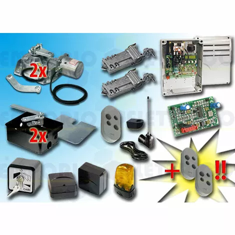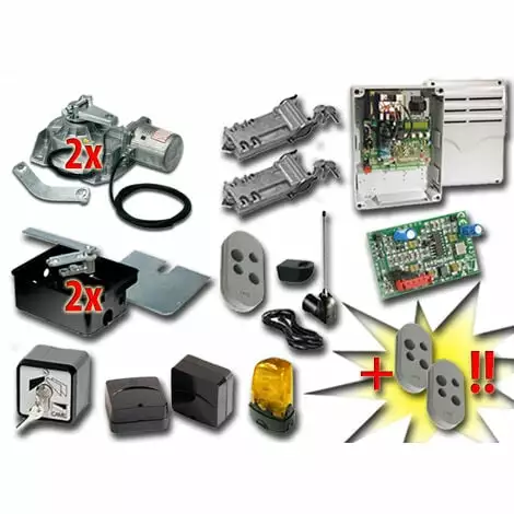 CAME – KIT DE MOTORISATION 230V AC POUR PORTAILS BATTANTS JUSQU’À 3,5 MT PAR VANTAIL, AUTOMATISME ENTERRÉ, AVEC ENCODEUR 001FROG-AE type 2A 230V ACLE KIT COMPREND:- 2 FROG-AE MOTEURS 230V AC BLOQUANTS AVEC ENCODEUR- 2 FROG-CFN CAISSONS DE FONDATION EN ACIER- 2 A4366 DISPOSITIFS DE DÉBLOCAGE AVEC CLÉ PERSONNALISÉE- 1 ZM3E ARMOIRE DE COMMANDE- 1 AF43S RÉCEPTEUR RADIO EN 433,92 MHz- 3 806TS-0100 TÉLÉCOMANDE 4 CANAUX EN 433.92/868.35 MHz CODE FIXE, DOUBLE FRÉQUENCE, 4 BOUTONS, GRIS. TOPD4FGS- 1 TOP-A433N ANTENNE EN 433,92 MHZ- 1 TOP-RG58 CÂBLE COAXIAL 5 MT- 1 SET-E SÉLECTEUR À CLÉ- 1 806TF-0080 Paire de photocellules infrarouges réglables et synchronisées pour l’extérieur, portée de 30 mètres (ex code 001delta-se / 001delta-e)- 1 KLED CLIGNOTANT À LED 230V AC- 1 KIAROS SUPPORT CLIGNOTANT- 1 PLAQUE PORTAIL