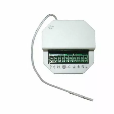 Récepteur extérieur pour moteurs mécaniques jusqu’à 50 Nm, 500 W. Récepteur pour moteurs avec fin de course électromécanique asynchrone monophasé alimenté à la tension du réseau pour l’automatisation de stores, persiennes et similaires. DONNÉES TECHNIQUES -Puissance maximale du moteur 500w/400 VA -Température de travail 0°C/ +55°C -Alimentation électrique 230 V AC/ 50Hz -Fréquence de réception 433,92 Hz / 868,35 MHz -Temps de fonctionnement 4min -Dimensions (mm) 51x51x27. ***