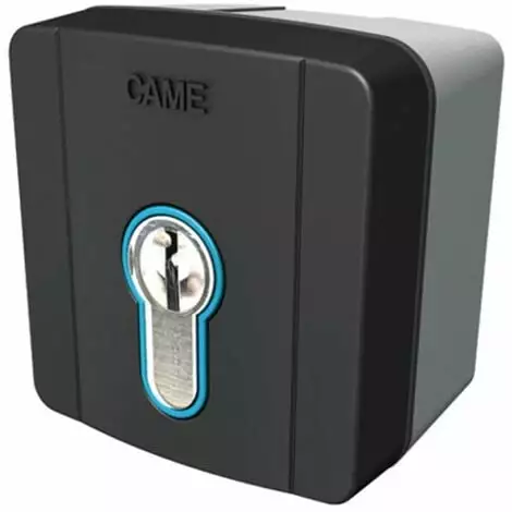 Sélecteur de clé externe Came SEL Key avec clé DIN pour portails automatiques Came, rétro-éclairé avec lumière bleue, avec cylindre européen DIN.